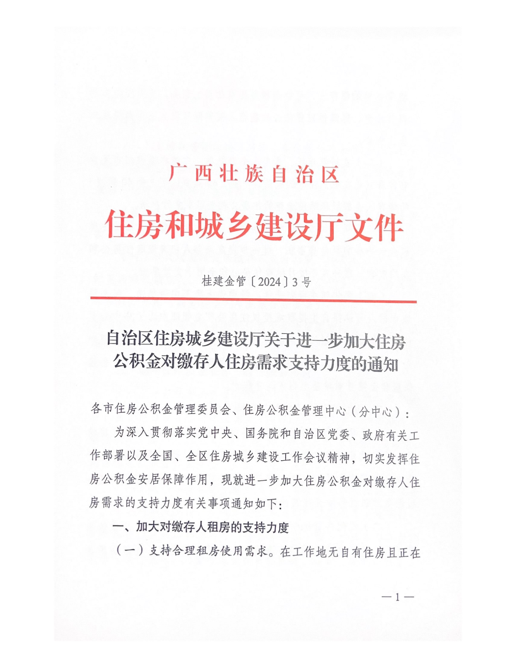 自治区住房城乡建设厅关于进一步加大住房公积金对缴存人住房需求支持力度的通知(桂建金管〔2024〕3号)