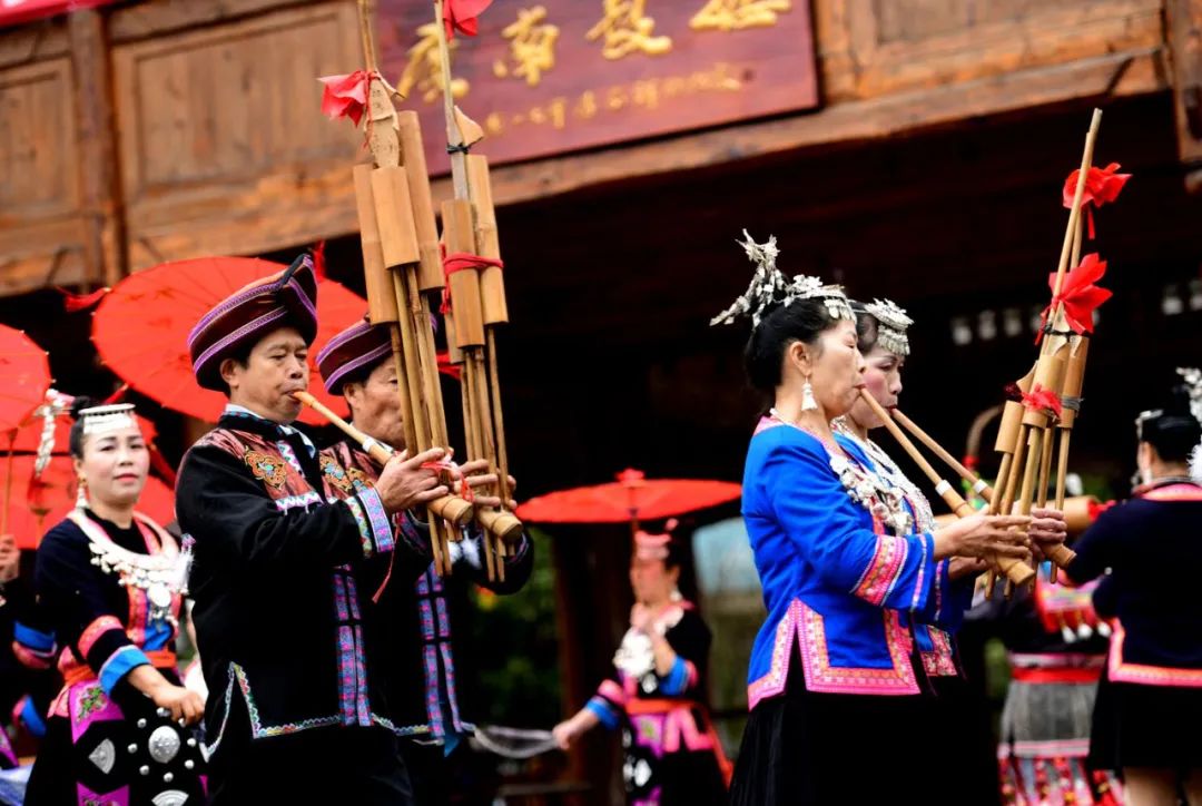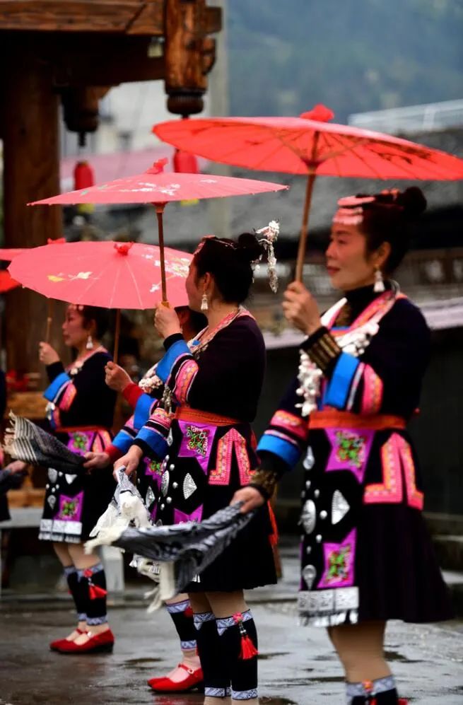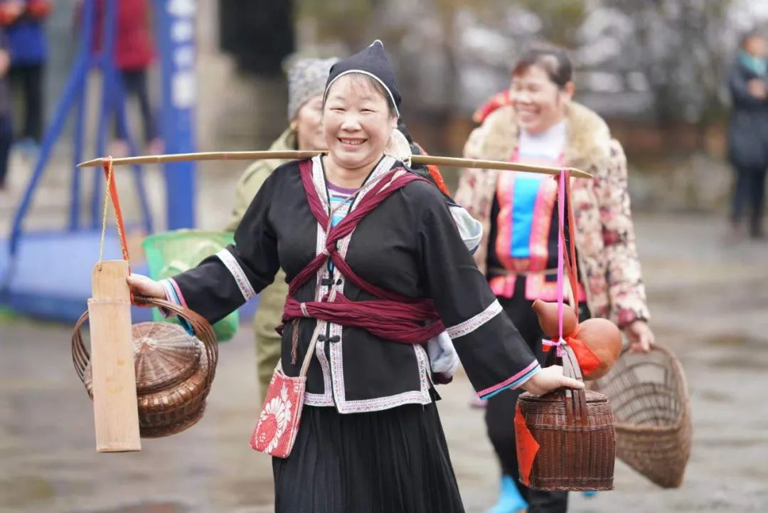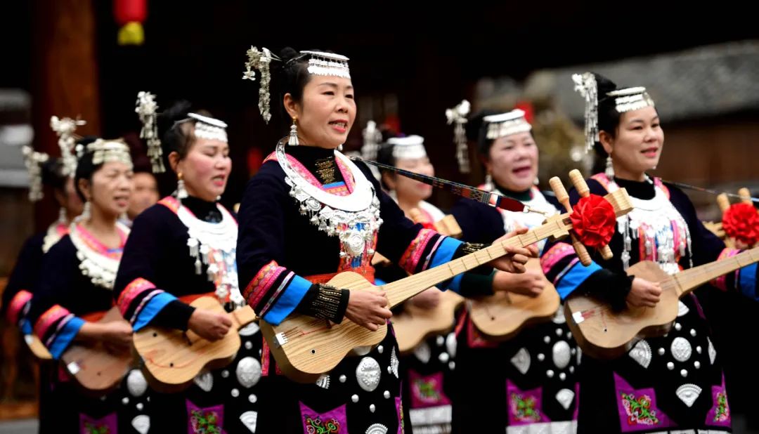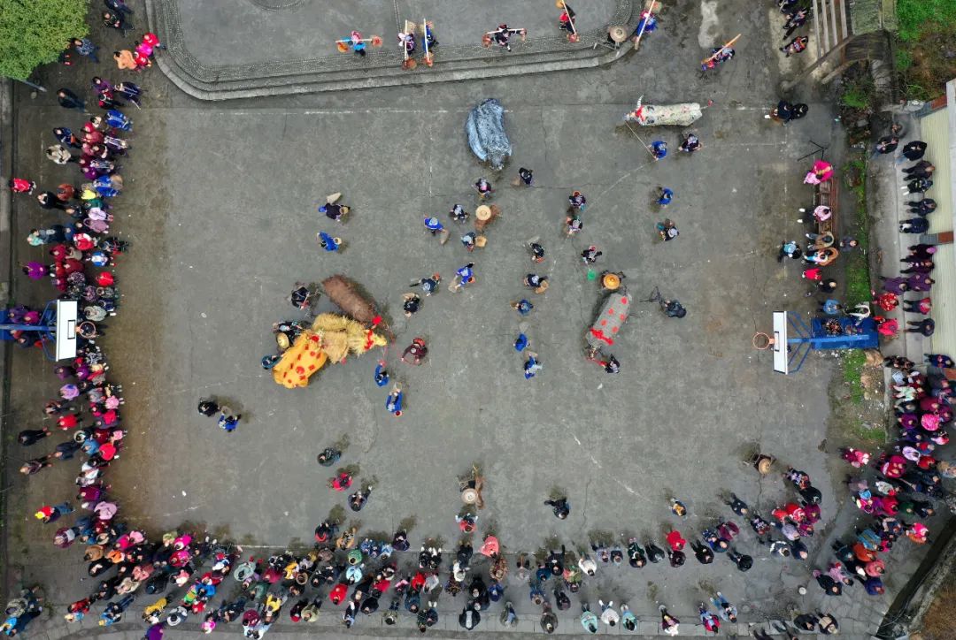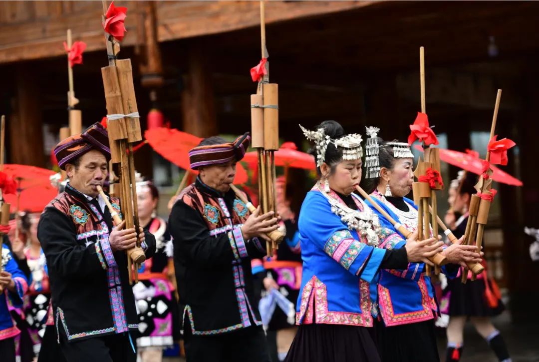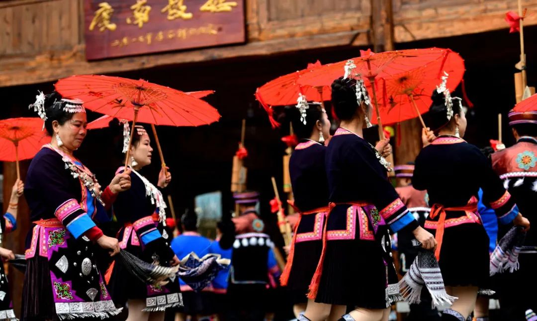 2月3日,在龙胜各族自治县平等镇广南村鼓楼前,侗族群众身着盛装汇集到鼓楼前,以闹春牛、芦笙踩堂、琵琶歌舞、打糍粑等侗族特色活动闹新春,祈求五谷丰登,阖家幸福,以此拉开新年生产的序幕。