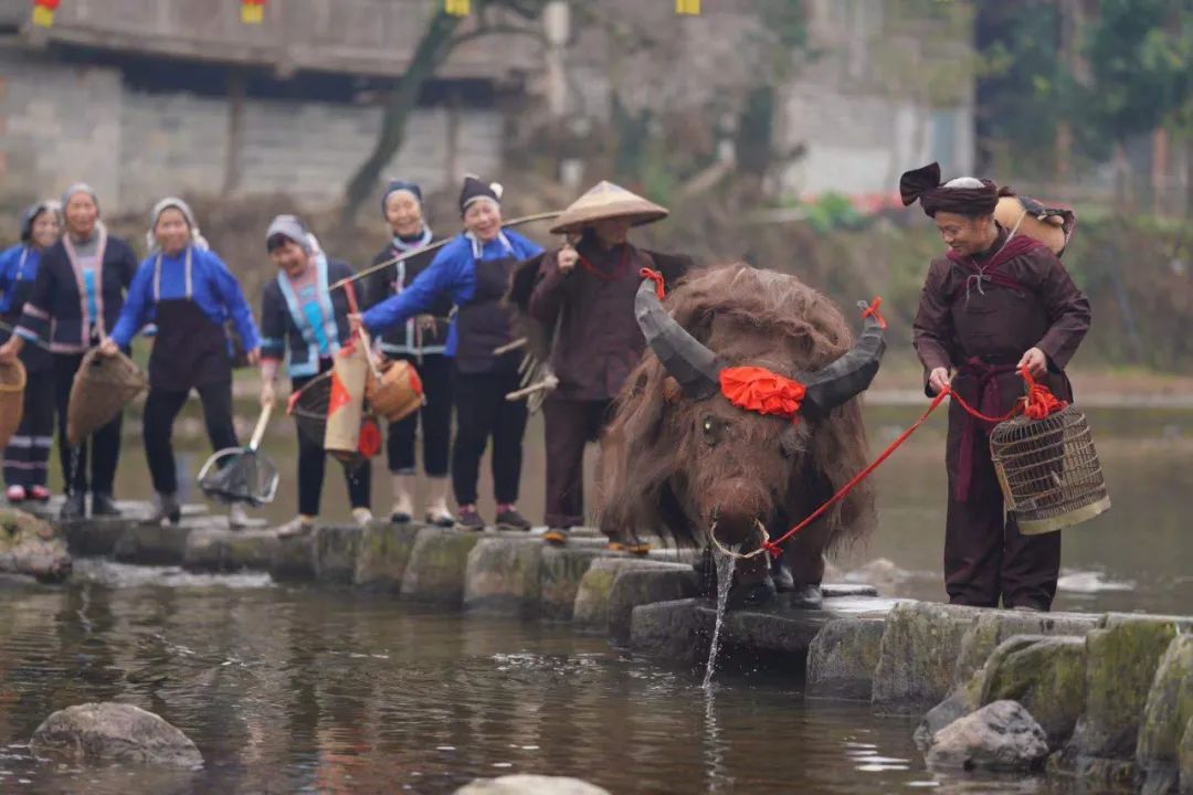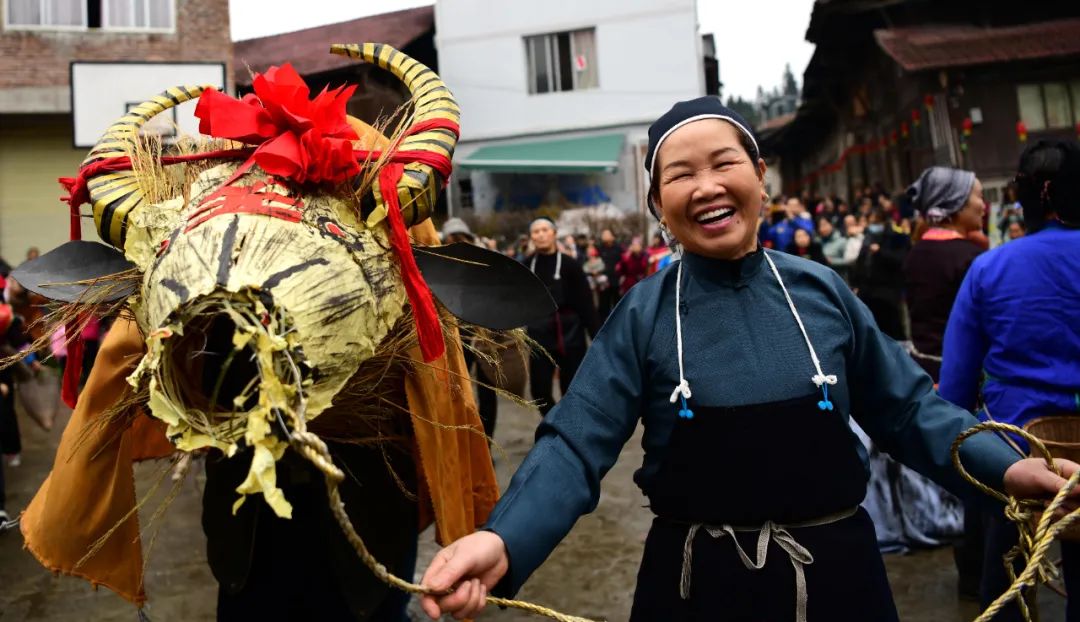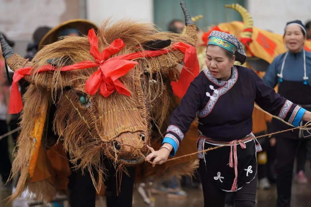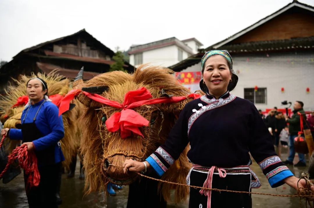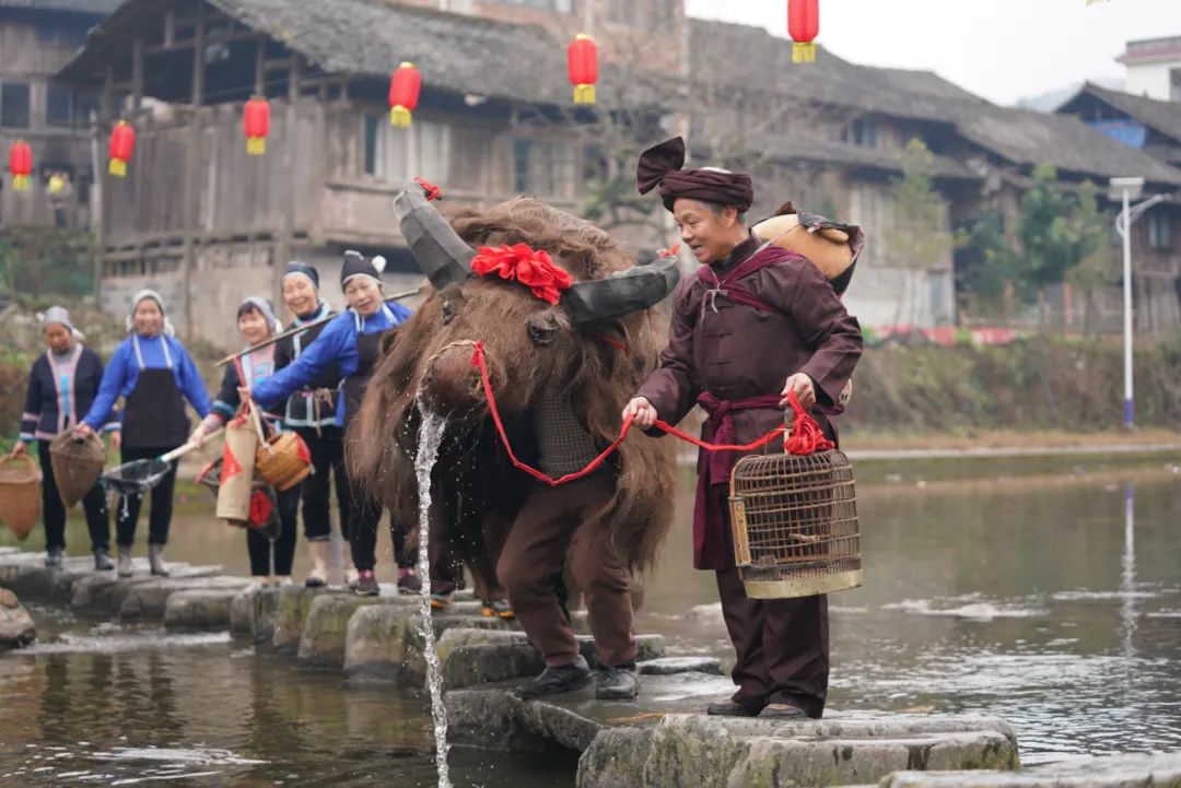 热闹的场面,增添了春节的喜庆气氛,闹春牛的人们为农家带来了节日的欢乐。侗族世代流传的闹春牛活动,是因为牛是侗族人们辛勤的帮手,所以家家户户,高高兴兴地放鞭炮迎接,祝福春天的到来,祈求来年风调雨顺、五谷丰登。