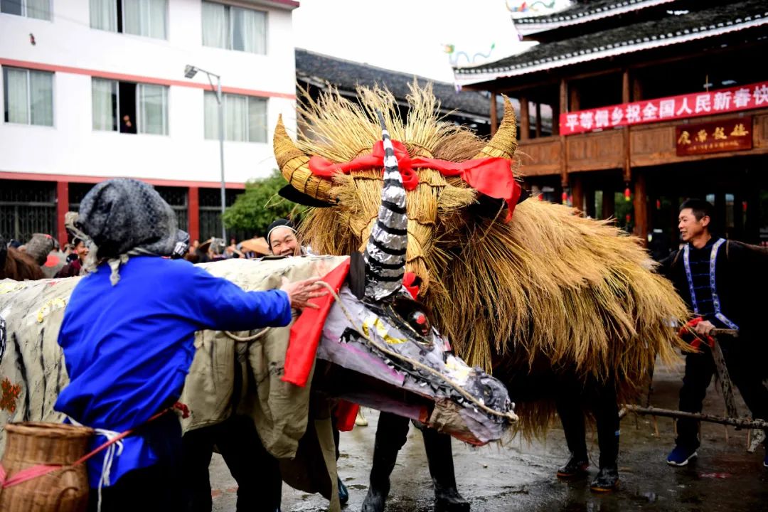 “在立春之日举行闹春牛活动是侗族地区的传统。”平等镇广南村民胡玲捷说,闹春牛活动既是庆祝头年的丰收,又通过拜节的形式祈求来年的风调雨顺,成为侗家新春文化活动的主要形式。闹春牛在侗族地区村村寨寨都有,只是规模不同,内容一样,形式一样。侗族群众举行具有诙谐风趣的闹春牛活动,有惟妙惟肖的侗族哆耶表演、有多姿多彩的芦笙踩堂、打糍粑、弹唱琵琶歌等活动。