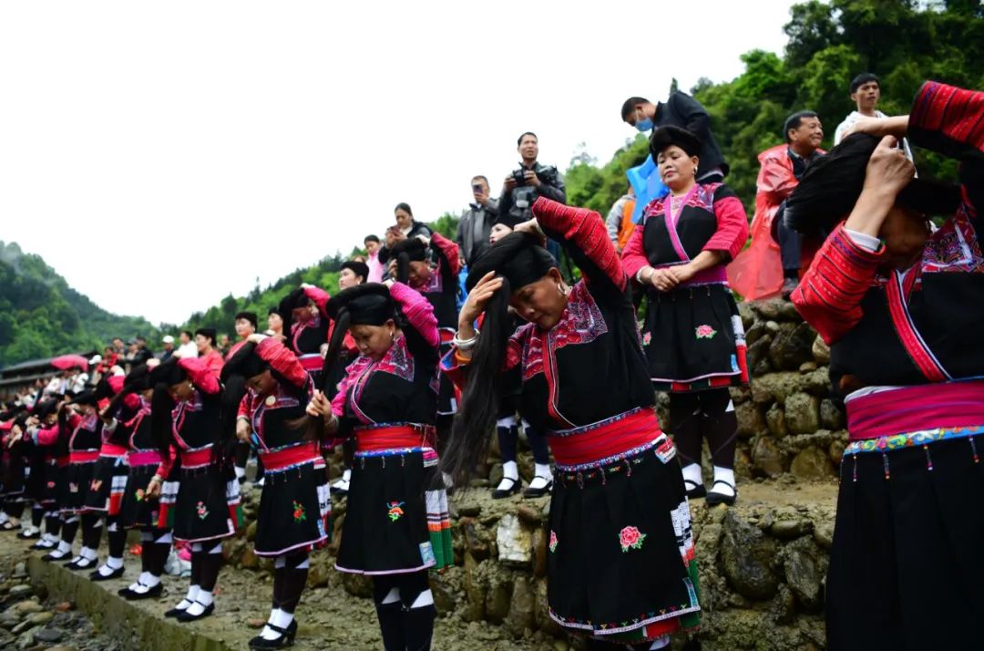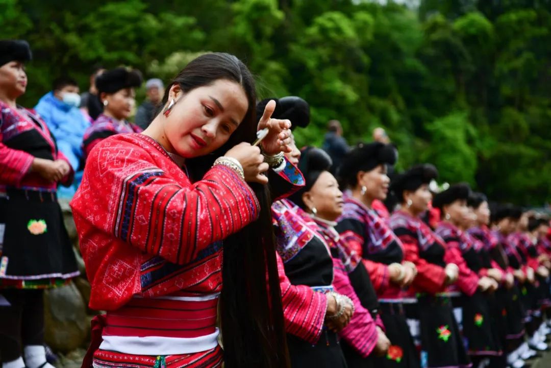 4月14日,龙胜各族自治县龙脊镇黄洛瑶寨举办“长发节”,来自该县马堤乡、泗水乡、乐江镇、龙脊镇等乡镇的苗、瑶、侗、壮、汉等民族同胞欢聚一堂,开展民俗巡游、苗族原生态婚庆展示、长发梳妆、弹唱琵琶歌、民族服饰梯田走秀等丰富多彩的活动,载歌载舞欢庆“三月三”。当天的活动,向广大游客展示了龙胜风情美、服饰美和风景美。