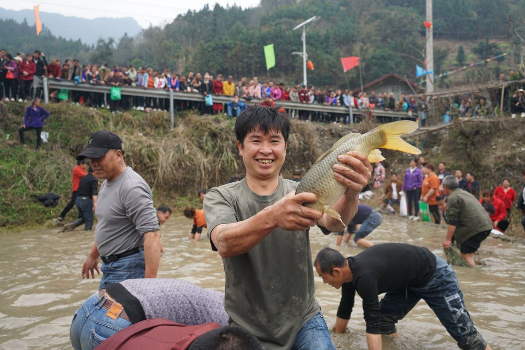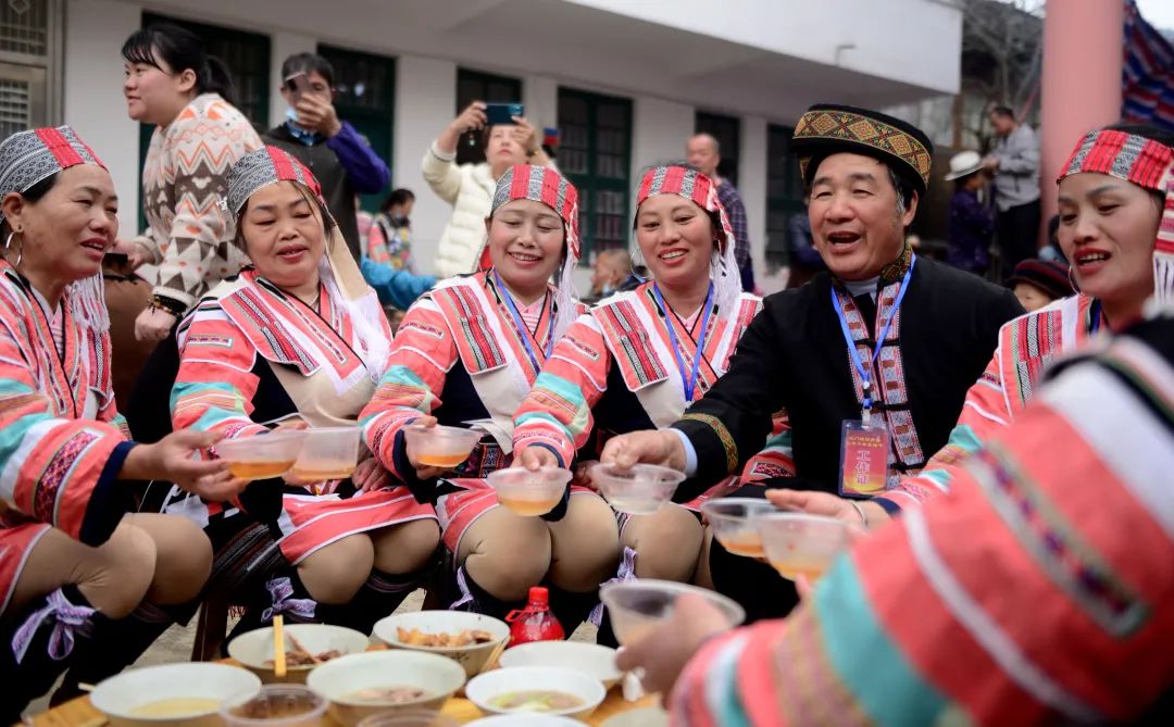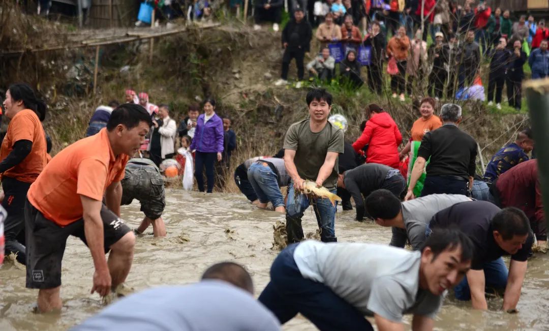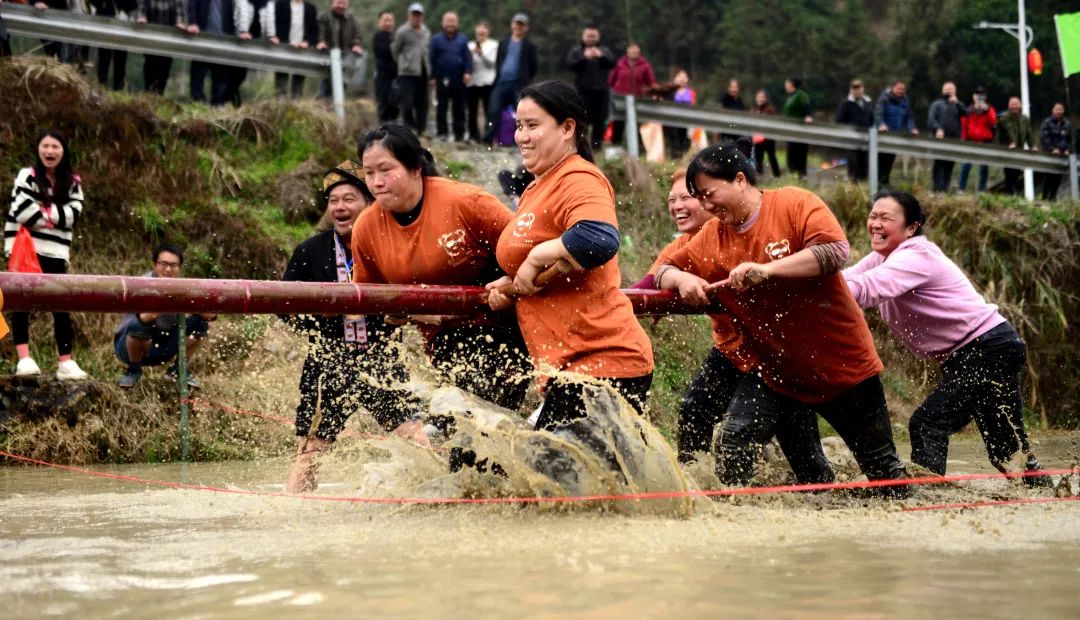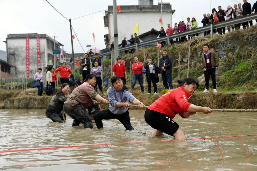 活动现场,炮声隆隆,锣鼓喧天,当地瑶族同胞们在田野里激情角逐,抢夺花炮,祈求风调雨顺、五谷丰登、国泰民安。此外,还开展了“浑水摸鱼”、水田拔河、水田顶竹杠、百家宴、文艺汇演等独具民族特色的活动。注入新时代气息的“抢花炮”已成为当地民俗节庆旅游的新亮点,上千游客涌入瑶寨,感受浓浓的节日氛围。