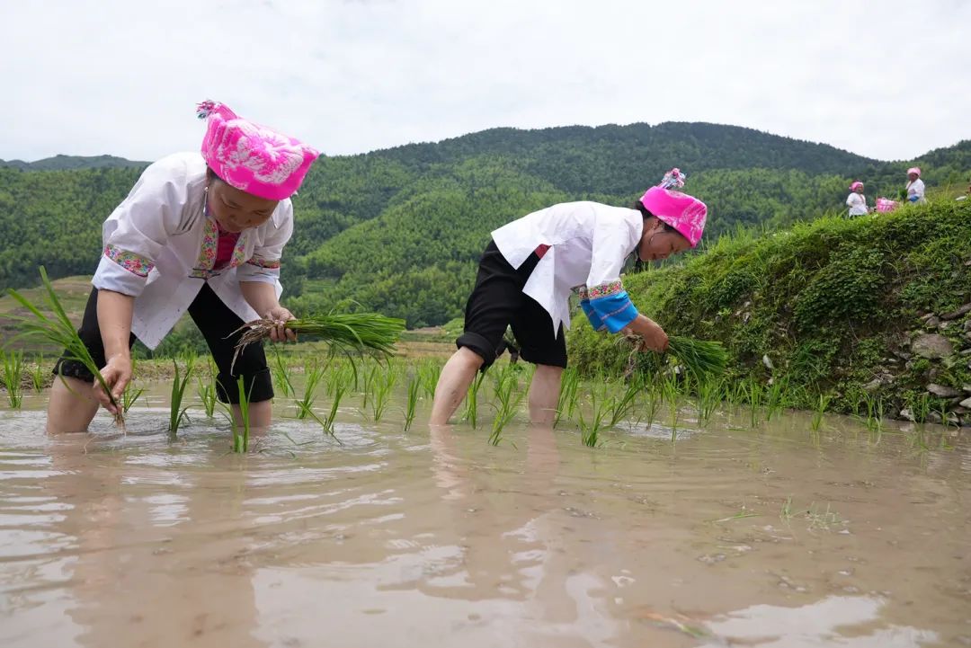 雨不知春去,一晴方觉夏深,及时趁芒种,龙脊田野梳秧忙。6月10日,龙脊镇平安村迎来了一年一度的“梳秧节”。每到芒种时节,地处大山深处的龙脊村民会选择一个好日子,举办“梳秧节”以祈求全寨风调雨顺、五谷丰登。