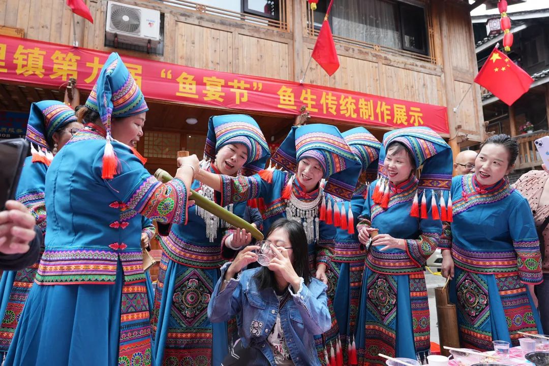 鱼翔浅底游岁月,壮美生活踏歌来,10月10日,龙胜各族自治县瓢里镇举办了“鱼宴节”活动,壮族阿哥阿嫂们踏着欢快的舞步,开门迎接来自天南地北的游客。这天,万人共聚瓢里小镇,尝瓢里鱼生,品壮家小酒,看鱼生擂台赛,体验浑水摸鱼,观特色民俗表演。县委常委、宣传部部长凌熙,县委常委、副县长(挂职)姚伏秋,县人大常委会党组成员、副主任潘艳玫,县人大二级调研员梁文星,县人大三级调研员曾波参加活动。