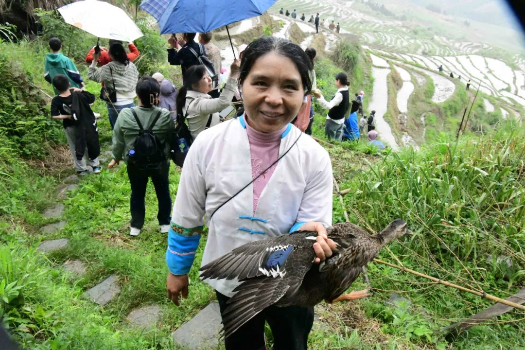 来自深圳的张先生手抓两只鸭,忙不迭的对记者说:“这是我第一次来到龙脊梯田,第一次参加这个活动,就抓到了两只鸭子,希望下次有机会继续来这里玩!”