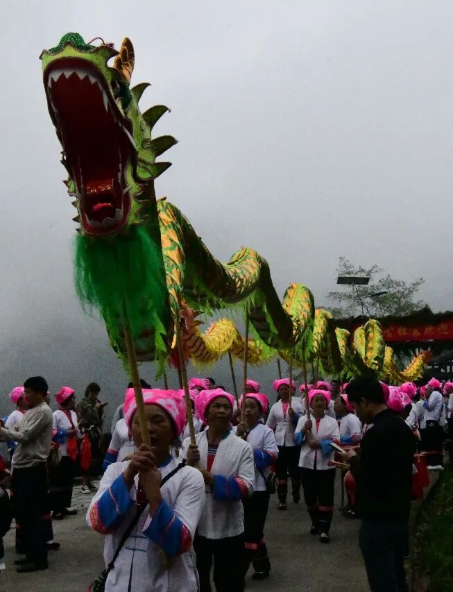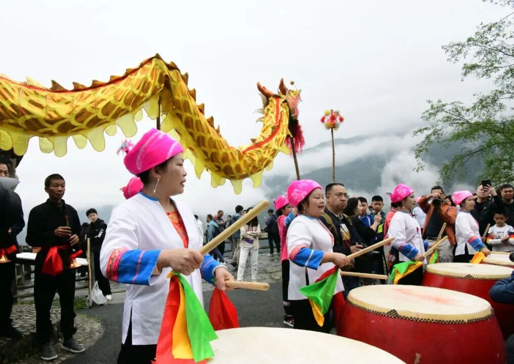 开耕之日,鼓乐齐鸣,耕牛奋蹄,犁铧破土,新泥翻卷,忙碌而有序,农耕之传承也。宛如龙鳞层层叠叠的梯田上,村民们身着民族服饰,吹着唢呐,敲着锣鼓,舞起金龙,随着两声炮响,壮、瑶少数民族男女边唱开田挖地歌,边开始耦耕、牛耕、刨地、除草等十二道农活,游客们置身其中,既体验到了浓郁的壮家民俗风情,也能一览梯田美景。