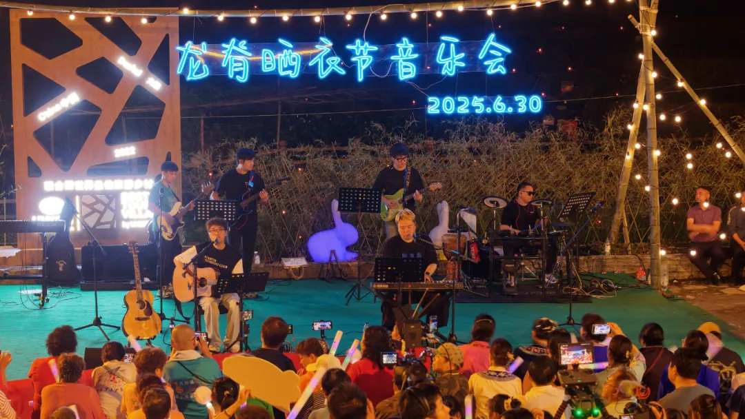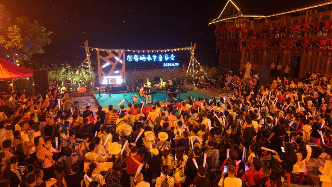 夜幕降临,火把次第点亮,星星点点的火光沿着梯田蜿蜒攀升,与月光、星光交相辉映,将绵延的梯田勾勒成金色丝带,如梦似幻。随着欢呼声响起,知名歌手罗小罗、龙胜本地乐队果苑琵琶队、罗汉果乐队以及音乐爱好者登台倾情献唱。这场以天地为幕、梯田为景的音乐会,为龙脊晒衣节增添了浓墨重彩的一笔,也让这场民俗盛宴在音乐声中达到高潮。