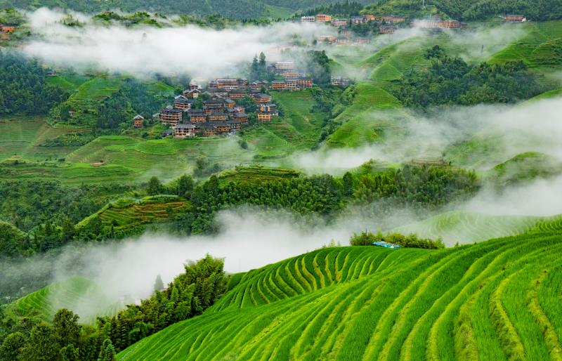 7-9月正值盛夏时节,禾苗生长旺盛,放眼望去犹如绿色的海洋;此时溪流水量充沛,也是体验漂流的最佳时机。