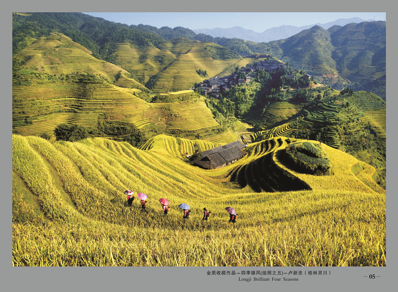 12月中下旬-2月中上旬:银装素裹(金坑梯田观景区);3月龙脊油菜花。以上描述可见龙脊梯田的四季都很美,但4月看水满田畴,9月看层层铺金景色尤其绚丽壮观。