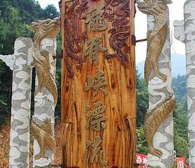 河谷两岸是高耸入云的山崖和叠障的梯田,从山脚到山顶分布 着苍翠茂密的原始森林。两岸植被保护良好,流量、流速相对稳定。除具有原始古朴、幽野的特色外,更富一种灵动、秀丽之美。船行其间忽左忽右,或前或后,穿峡谷、渡险滩、越激流、转旋涡、冲浪尖,游客可切身感受澎湃激昂的心灵震撼;抑或在群山怀抱的湖上亲水乐园中畅快戏水玩耍。