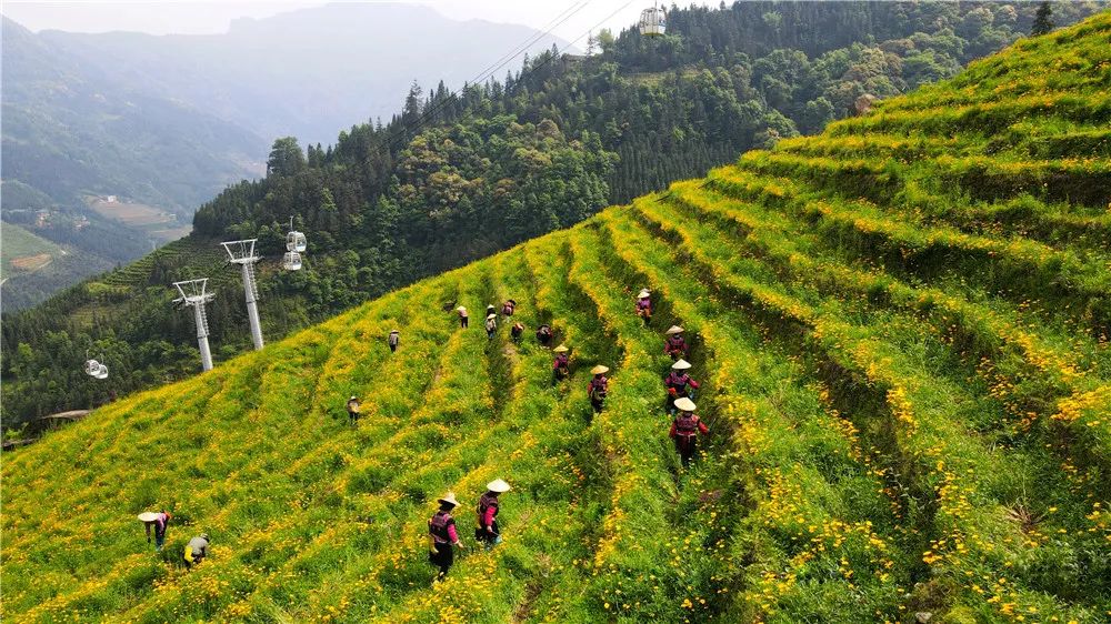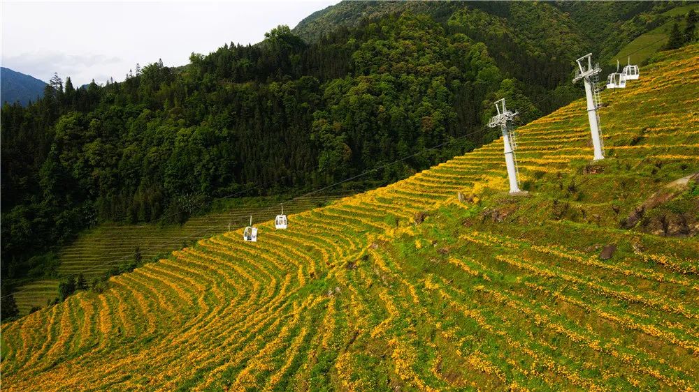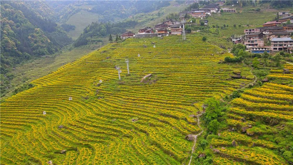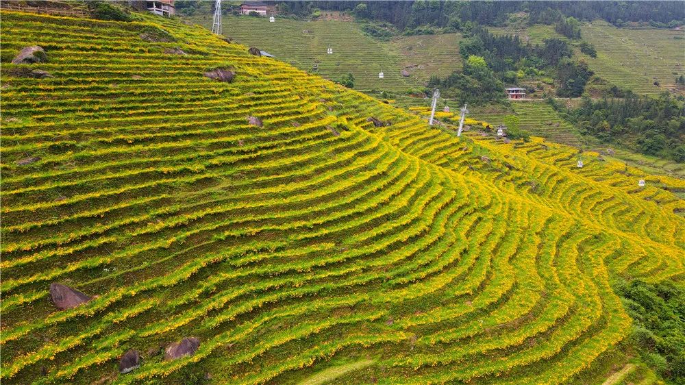 万万朵嫩黄色的花朵一夜间开满梯田