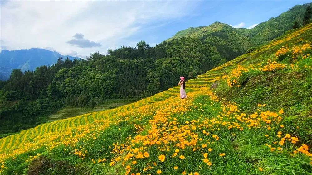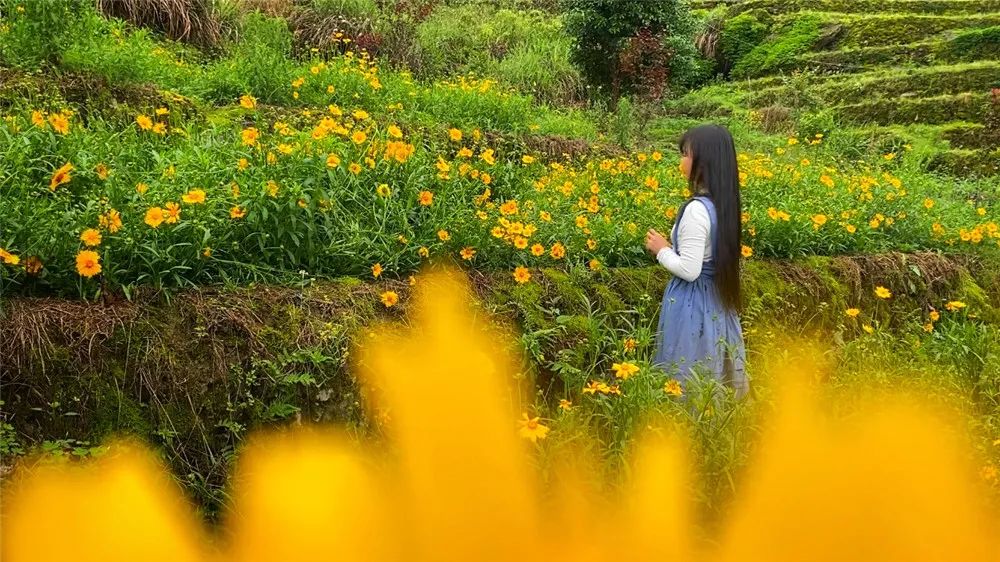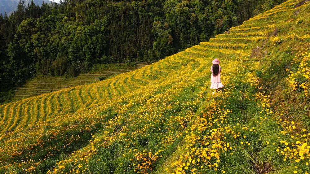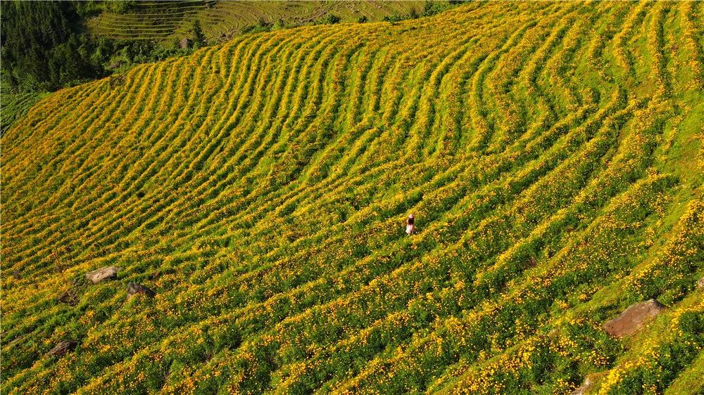 布尼梯田的金鸡菊如同沉睡的美人