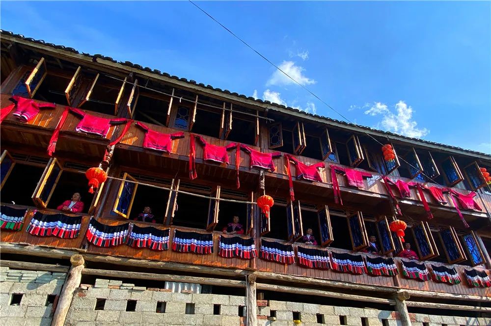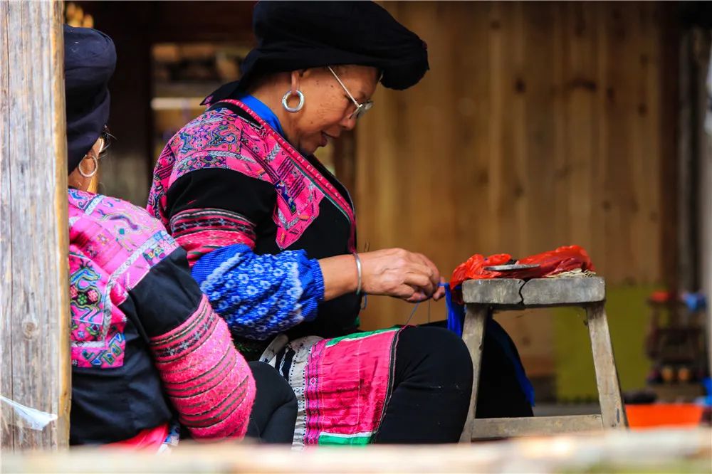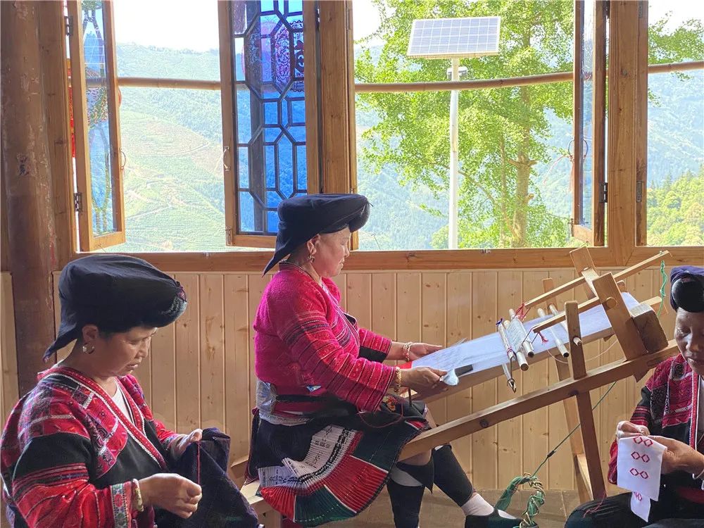 还可见阿嫂们三三两两织布刺绣