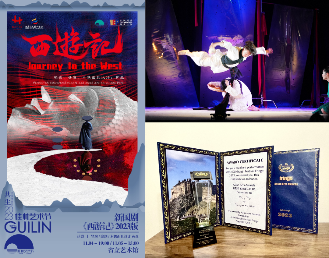 国内中生代导演中的两位杰出代表——黄盈和赵淼,应邀担任“英才计划”推广人 ,他们的委约作品代表桂林艺术节在今年爱丁堡艺术节精彩亮相,广受好评。在23部国际剧目的激烈竞争中,黄盈凭新国剧《西游记》(2023版)荣获“最佳导演奖”,赵淼导演的形体戏剧《大胆妈妈和她的孩子们》荣获“亚洲艺术特别奖”、演员汪月荣获“特别表演奖”。