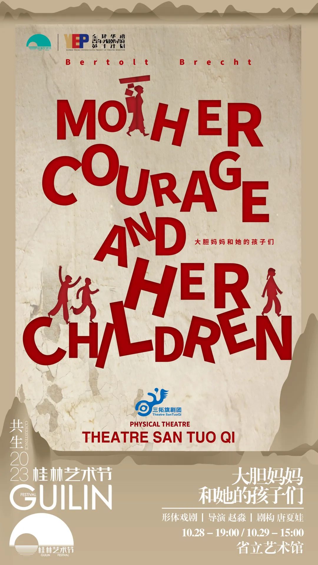 用肢体语言讲述不同人物的生活使得三拓旗剧团得以在世界舞台上声名远扬。赵淼导演最新创作的形体戏剧《大胆妈妈和她的孩子们》于今年8月惊艳亮相爱丁堡艺穗节,荣获“亚洲艺术特别奖”。剧中饰演“大胆妈妈”一角的演员汪玥也因起精湛演技获得了“特别表演奖”。作为本届桂林艺术节的委约剧目,本剧载誉而归,将为观众带来这部剧目的中国首演。
