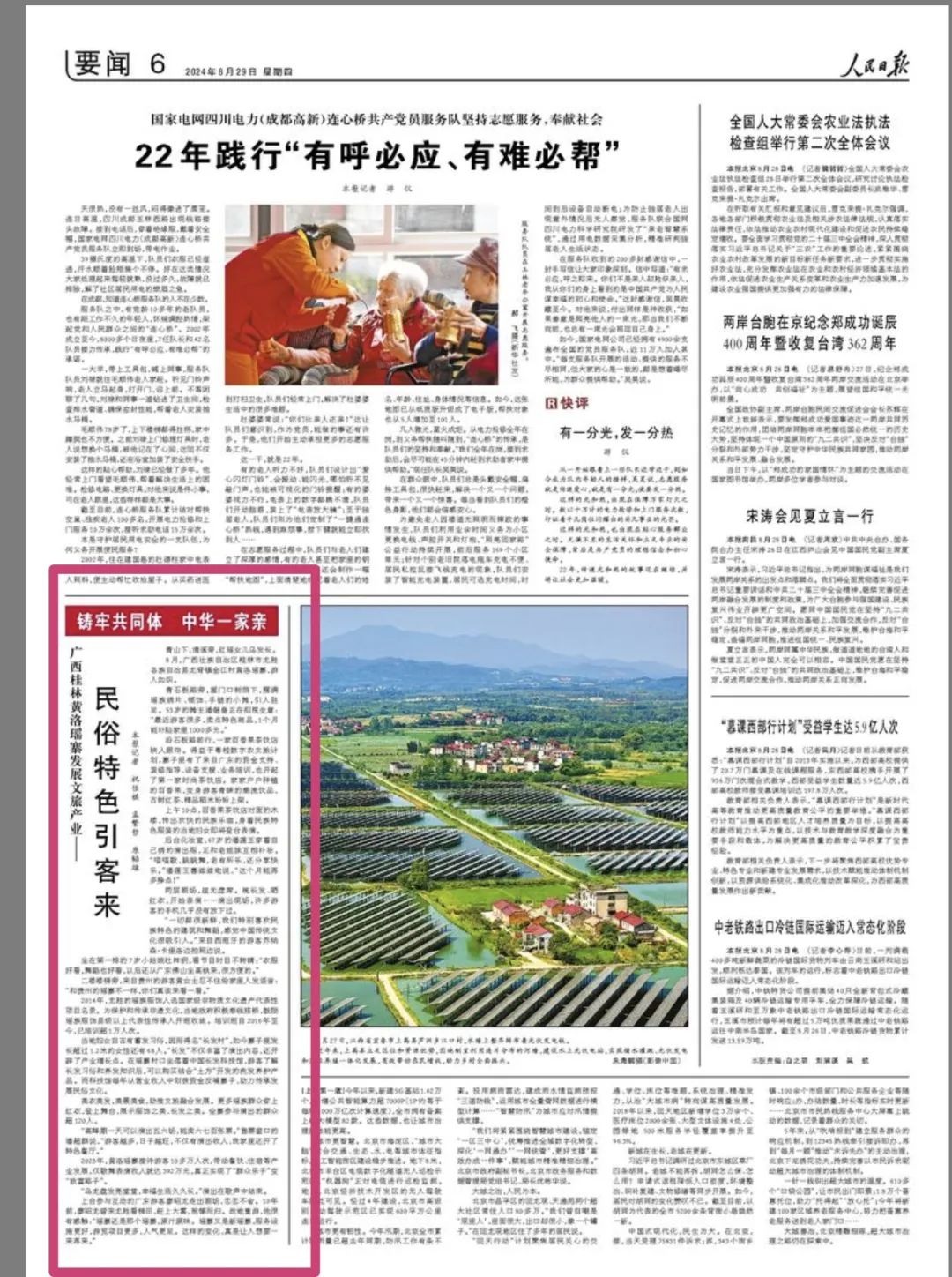 8月29日,《人民日报》第6 版版面。