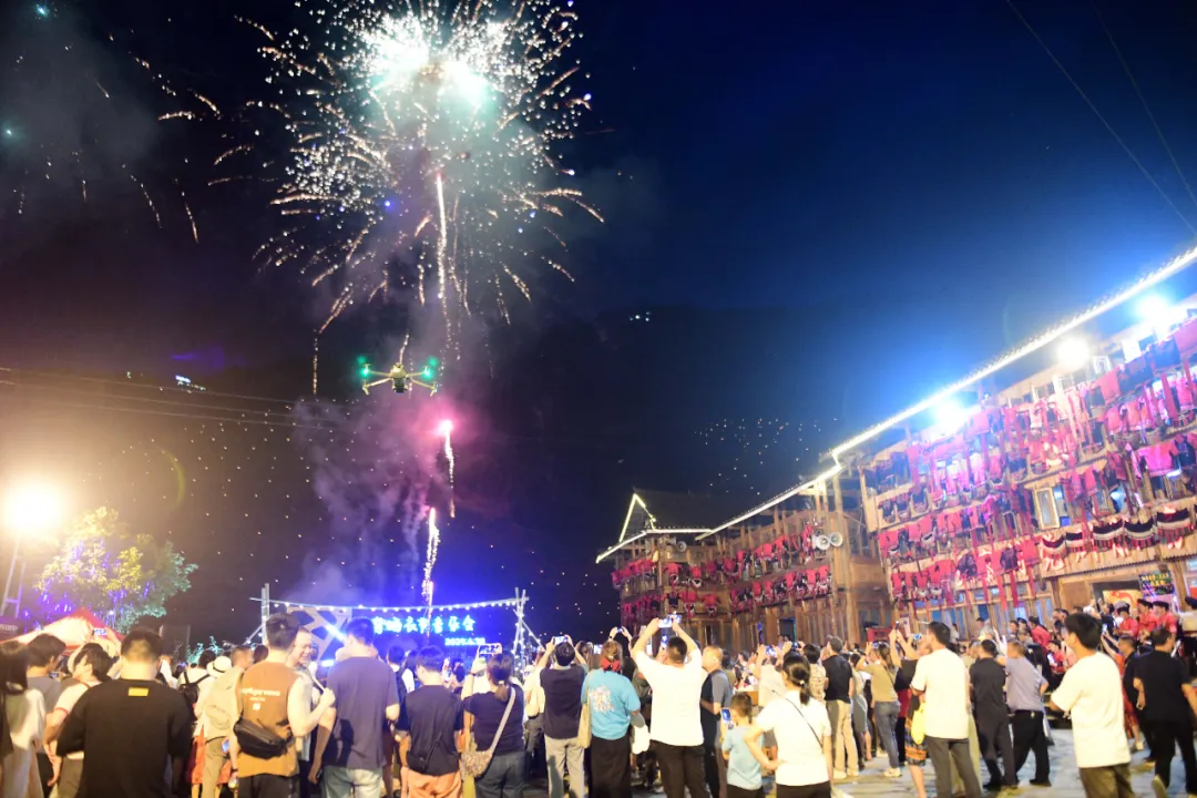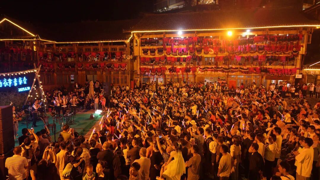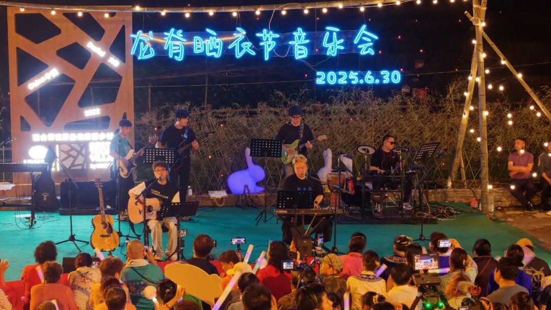 夜幕降临,火把次第点亮,星星点点的火光沿着梯田蜿蜒攀升,与月光、星光交相辉映,将绵延的梯田勾勒成金色丝带,如梦似幻。随着欢呼声响起,知名歌手罗小罗、龙胜本地乐队果苑琵琶队、罗汉果乐队以及音乐爱好者登台倾情献唱。这场以天地为幕、梯田为景的音乐会,为龙脊晒衣节增添了浓墨重彩的一笔,也让这场民俗盛宴在音乐声中达到高潮。