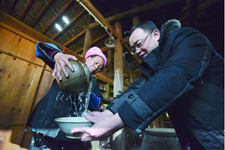 龙脊水酒是道地的土酒,它虽然不是很有名,但享誉全县,成为各族人民人人交口称赞的美酒。水酒纯属上等糯米之原汁,用土制酒药酿造密封后兑冲甘泉而成,芳醇爽口,润脾生津,营养丰富。人说龙脊十三寨人,肌肤红润,健康长寿,是常年饮食佳酿之故。其中有一种推为上乘的陈年窖酒,几十斤的糯饭,溶成一小团沉于坛底,此酒澄清见底,滴而成丝,喝了沾唇;其味芬芳蜜甜,极为爽口,欲罢难止。不过需当心其后劲,虽醉力迟缓,但一醉即倒,数日方醒。这种酒一般人难于喝到,游人需深入壮家,被主人奉为上宾,视为至爱亲朋,方能一饮。