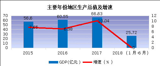 5.工业增加值。2017年规模以上工业实现增加值27.84亿元,同比增长5.7%。按不变价计算,“十三五”前两年,工业增加值年均增长5.95%。