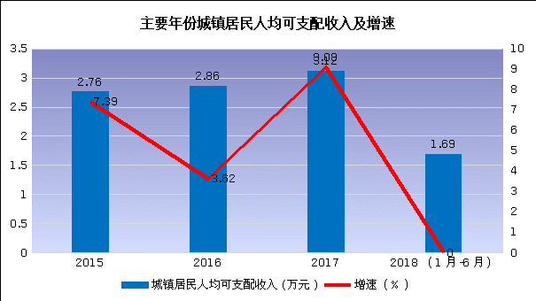 1.城镇居民人均可支配收入。2017年全县城镇居民人均可支配收入达到31172元,同比增长9%,“十三五”前两年年均增长8.3%,低于《纲要》目标2.8个百分点。2018年上半年初步统计数为16849元。