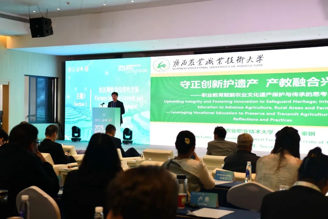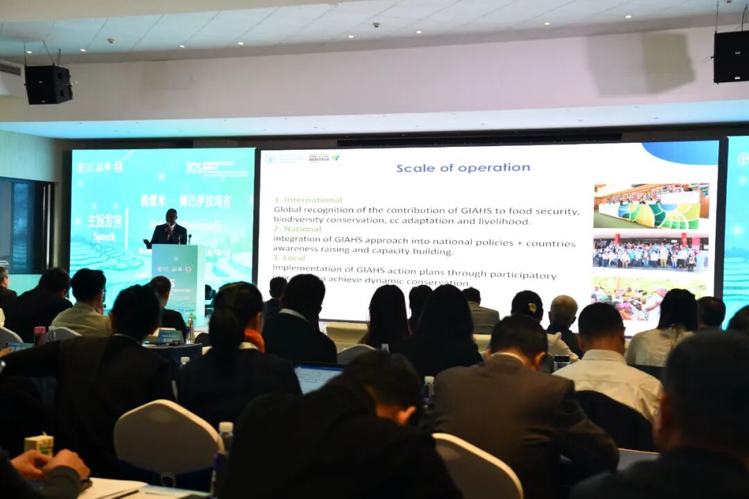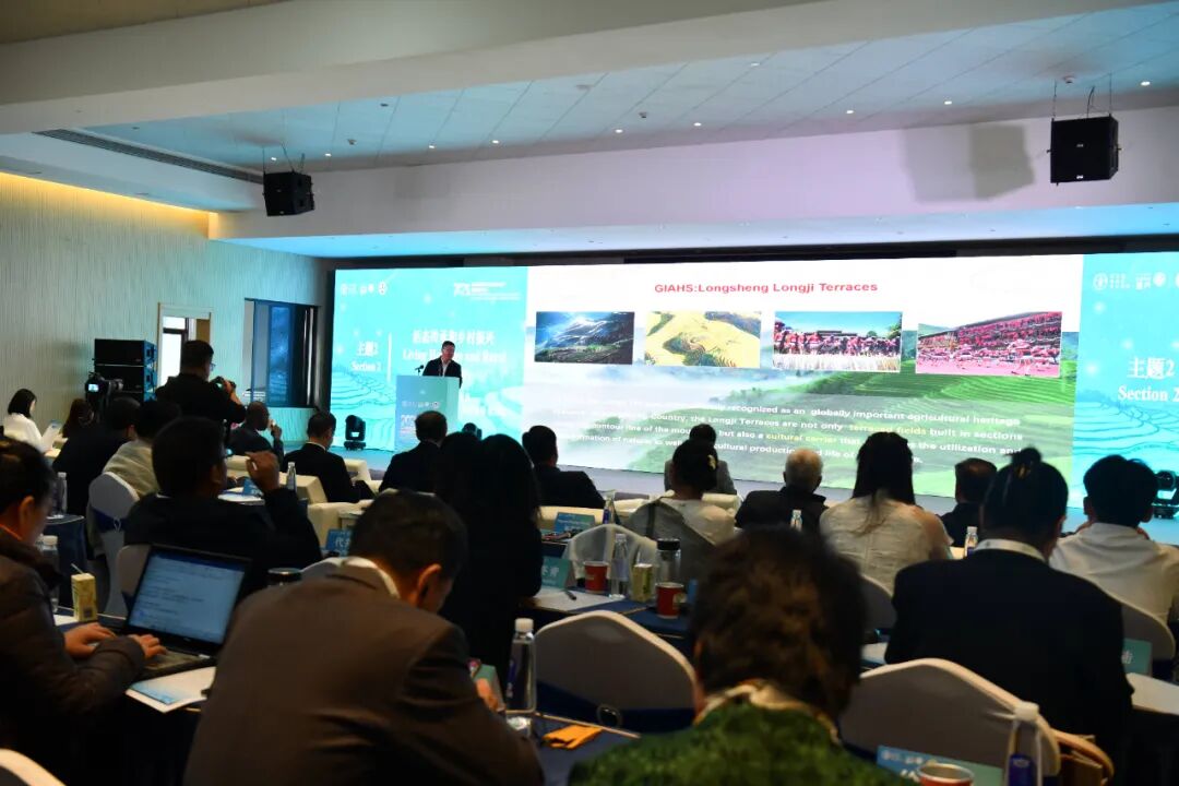 在主题研讨阶段,与会嘉宾围绕 “传统智慧和绿色发展”“活态传承和乡村振兴”“农民增收和包容性发展” 三大议题展开深度交流。来自中国、阿尔及利亚、泰国等国家的专家学者与地方实践者,结合浙江青田稻鱼共生系统、内蒙古敖汉旱作农业系统、龙胜龙脊梯田等典型案例,探讨了传统农耕智慧与现代绿色农业的结合路径,分享了遗产地通过文旅融合、产业升级实现乡村振兴的成功经验。龙胜各族自治县县长蒙新宇介绍的 以“一田生五金” 模式激活遗产价值,龙胜走出了一条“打生态牌、吃民族饭、赚旅游钱”振兴之路,得到与会代表的广泛关注与认可。