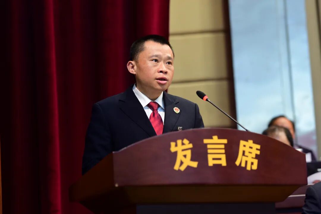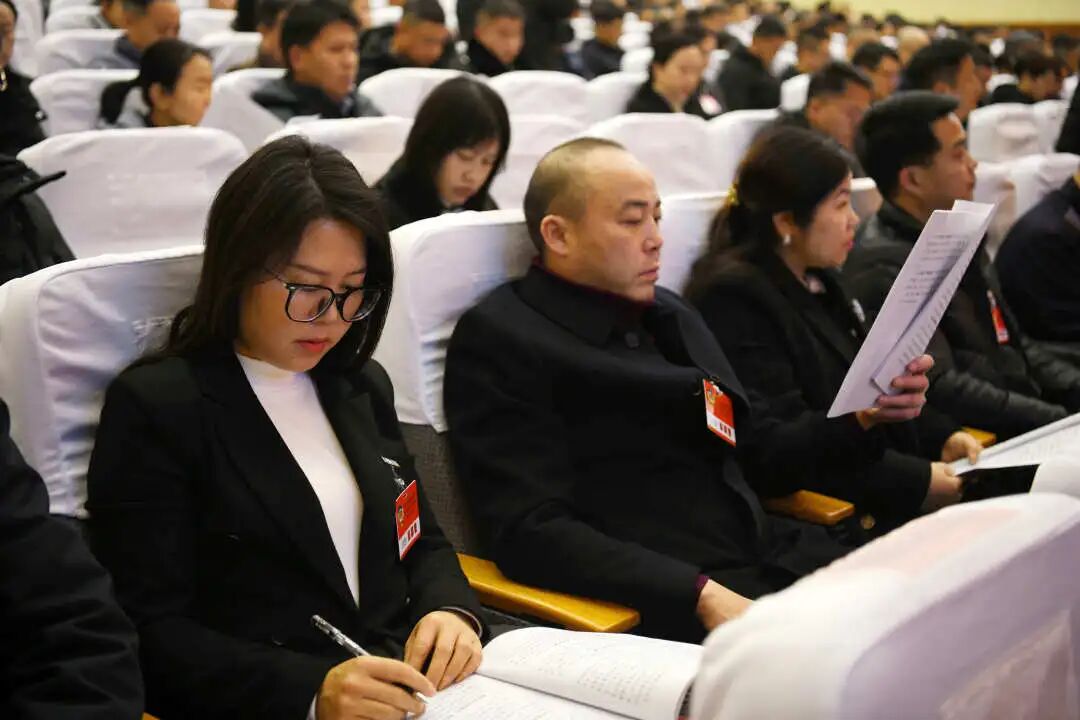 在热烈的掌声中,自治县县长蒙新宇代表自治县人民政府向大会作政府工作报告。