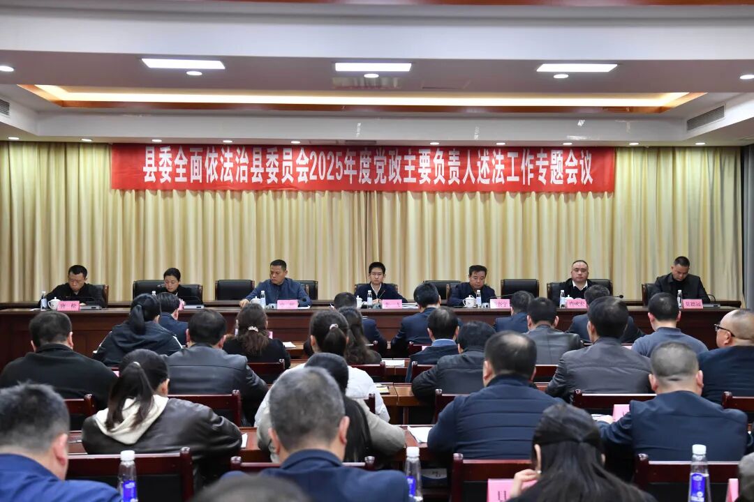 3月6日,县委全面依法治县委员会2025年度党政主要负责人述法工作专题会议召开,自治县委书记李一飞主持会议并作点评讲话,自治县县长蒙新宇出席会议。
