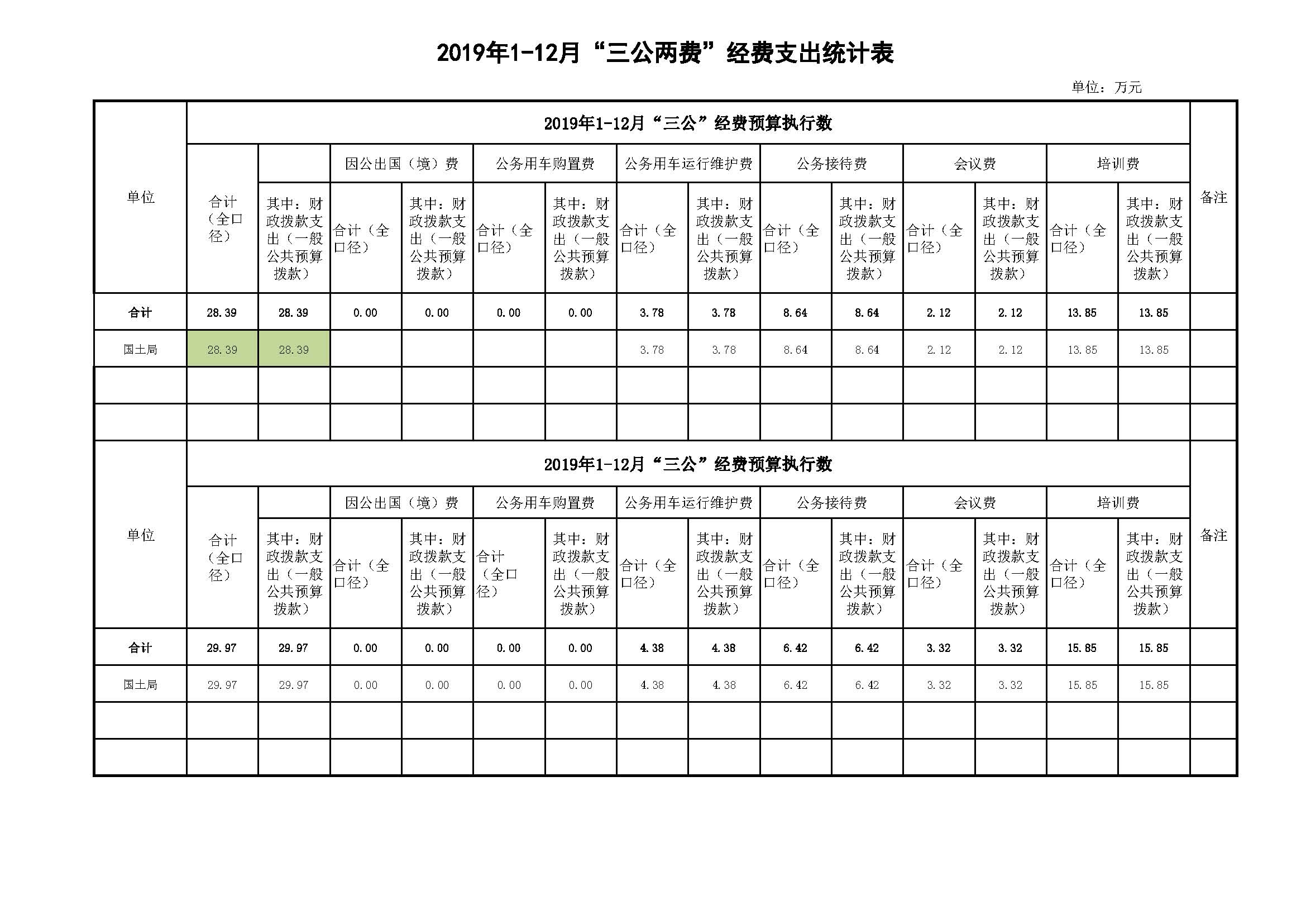 龙胜各族自治县自然资源局2019年1-12月“三公两费”经费支出统计表