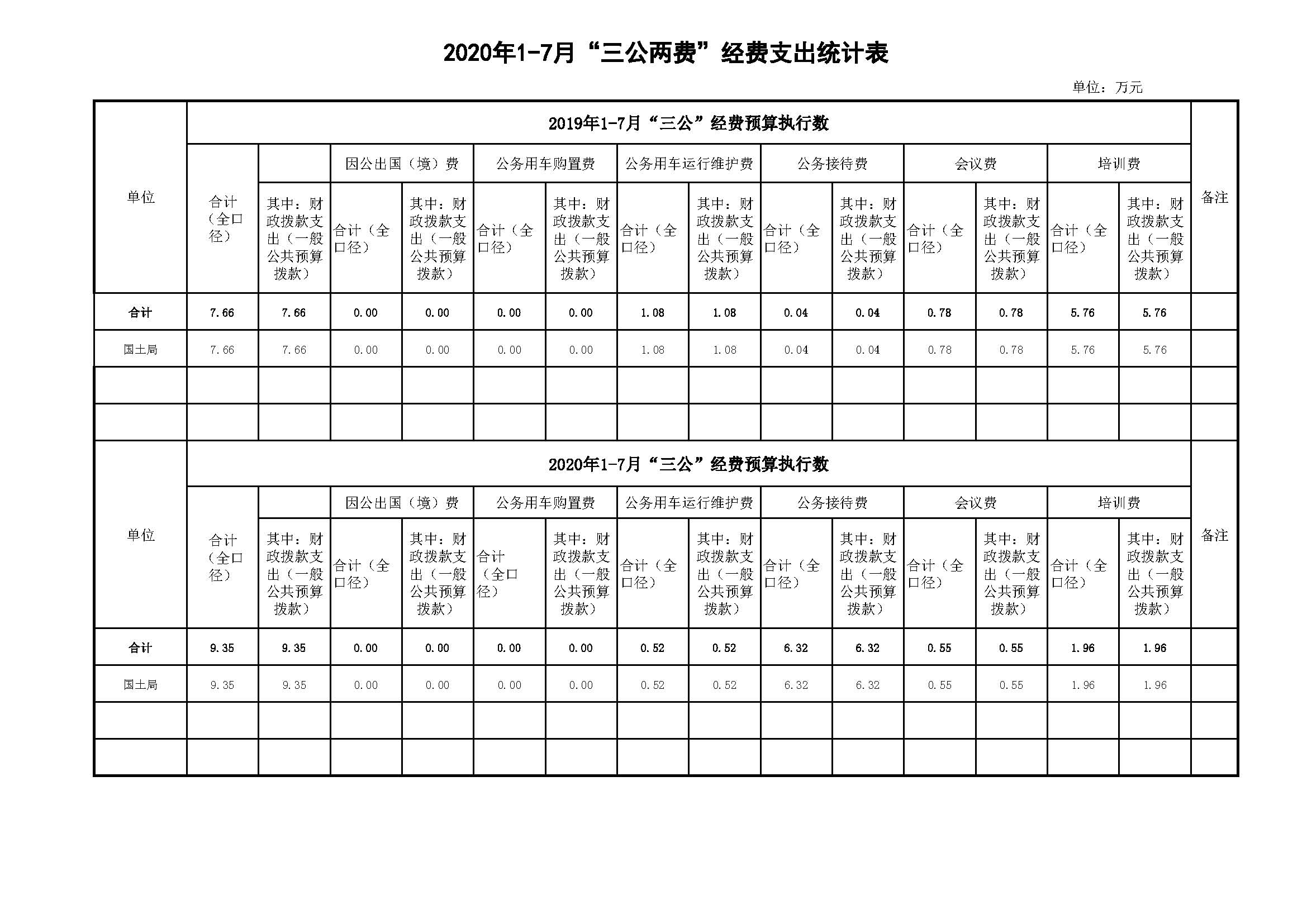 龙胜各族自治县自然资源局2020年1-7月“三公两费”经费支出统计表