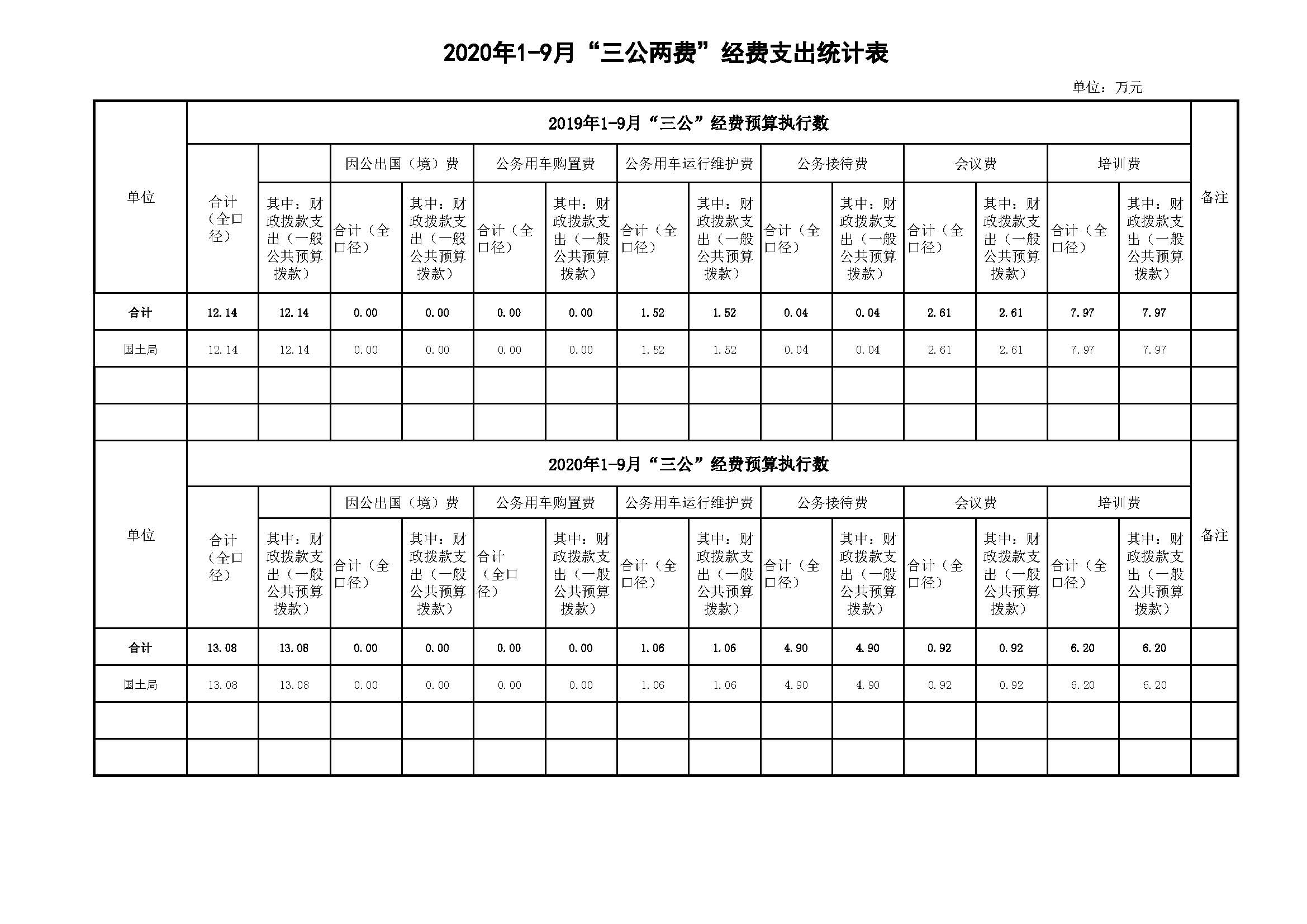 龙胜各族自治县自然资源局2020年1-9月“三公两费”经费支出统计表
