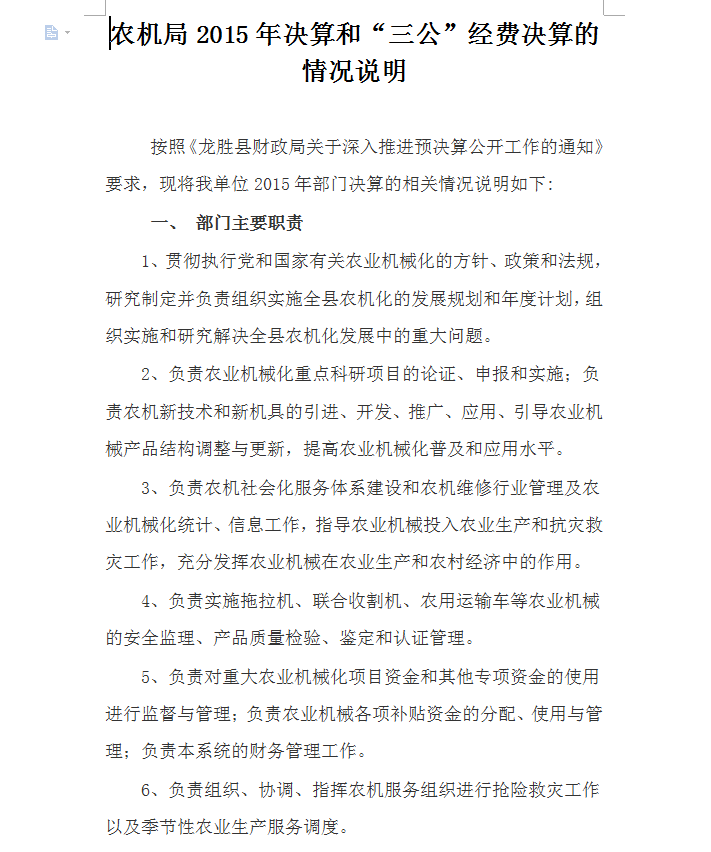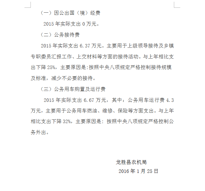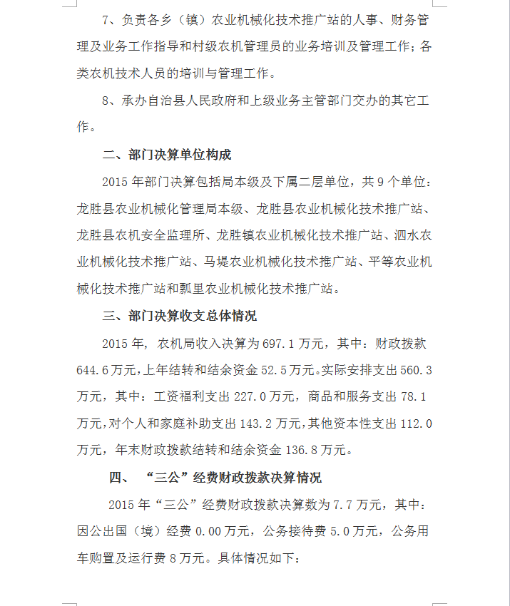 农机局2015年决算和“三公”经费决算的情况说明