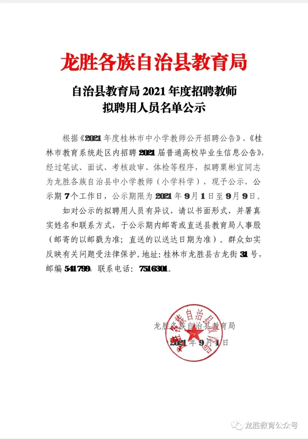 自治县教育局2021年度招聘教师拟聘用人员名单公示