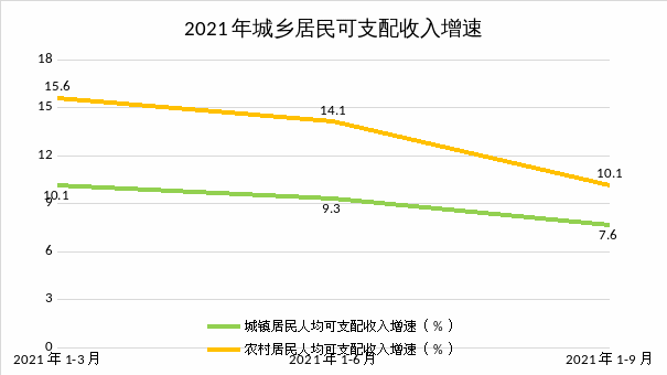 (八)城乡居民收入持续增长。1-9月,我县城镇居民人均可支配收入29670元,同比名义增长7.6%,两年平均增长4.9%。农村居民人均可支配收入9824元,同比名义增长10.1%,两年平均增长9.5%。农村居民收入两年平均增速快于城镇居民4.6个百分点。