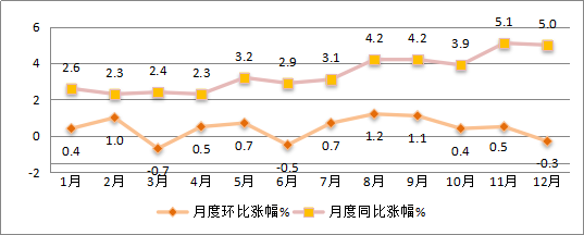 图3 2019年月度居民消费价格涨跌情况