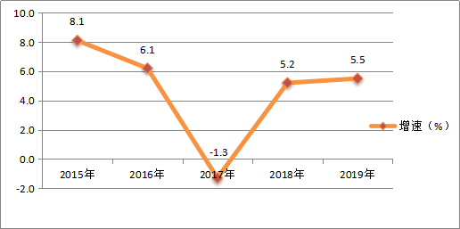 图4 2015-2019年全部工业增加值增长速度