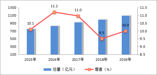 图6 2015-2019年社会消费品零售总额及增长速度