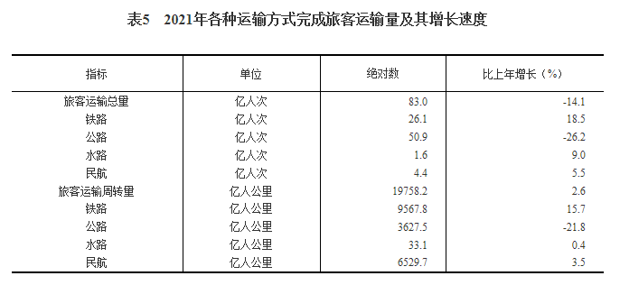 [29]货物运输总量及周转量包括铁路、公路、水路、民航和管道五种运输方式完成量,2021年增速按可比口径计算。
