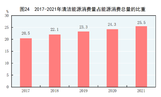 初步核算,全年能源消费总量52.4亿吨标准煤,比上年增长5.2%。煤炭消费量增长4.6%,原油消费量增长4.1%,天然气消费量增长12.5%,电力消费量增长10.3%。煤炭消费量占能源消费总量的56.0%,比上年下降0.9个百分点;天然气、水电、核电、风电、太阳能发电等清洁能源消费量占能源消费总量的25.5%,上升1.2个百分点。重点耗能工业企业单位电石综合能耗下降5.3%,单位合成氨综合能耗与上年持平,吨钢综合能耗下降0.4%,单位电解铝综合能耗下降2.1%,每千瓦时火力发电标准煤耗下降0.5%。全国万元国内生产总值二氧化碳排放[78]下降3.8%。