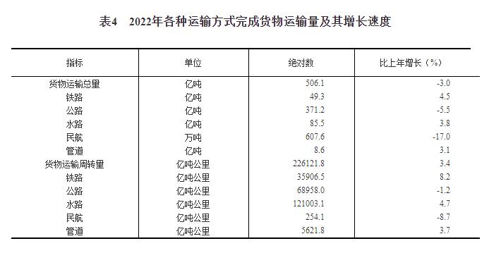 [26]货物运输总量及周转量包括铁路、公路、水路、民航和管道五种运输方式完成量,2022年增速按可比口径计算。