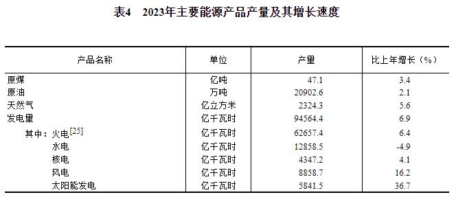 初步核算,全年一次能源生产总量48.3亿吨标准煤,比上年增长4.2%。