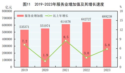 [14]规模以上服务业统计范围包括:年营业收入2000万元及以上的交通运输、仓储和邮政业,信息传输、软件和信息技术服务业,水利、环境和公共设施管理业,卫生行业法人单位;年营业收入1000万元及以上的房地产业(不含房地产开发经营),租赁和商务服务业,科学研究和技术服务业,教育行业法人单位;以及年营业收入500万元及以上的居民服务、修理和其他服务业,文化、体育和娱乐业,社会工作行业法人单位。2023年规模以上服务业企业财务指标增速按可比口径计算。