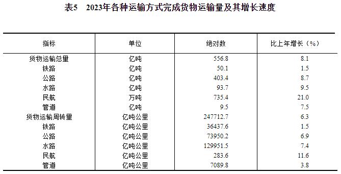 [28]货物运输总量及周转量包括铁路、公路、水路、民航和管道五种运输方式完成量,2023年增速按可比口径计算。