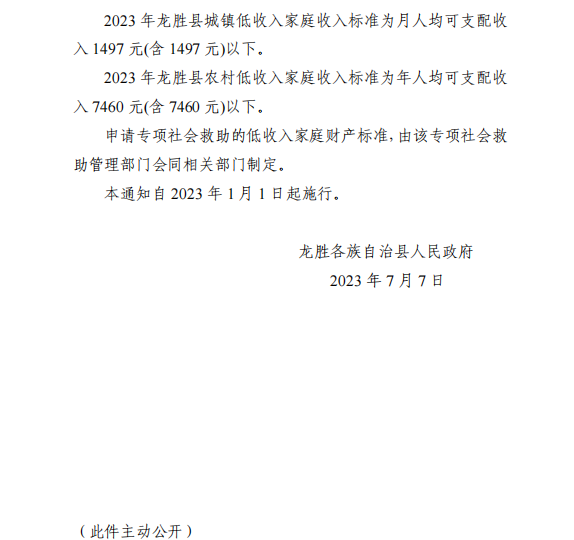 龙胜各族自治县人民政府关于公布2023年龙胜各族自治县城镇和农村低收入家庭收入标准的通知