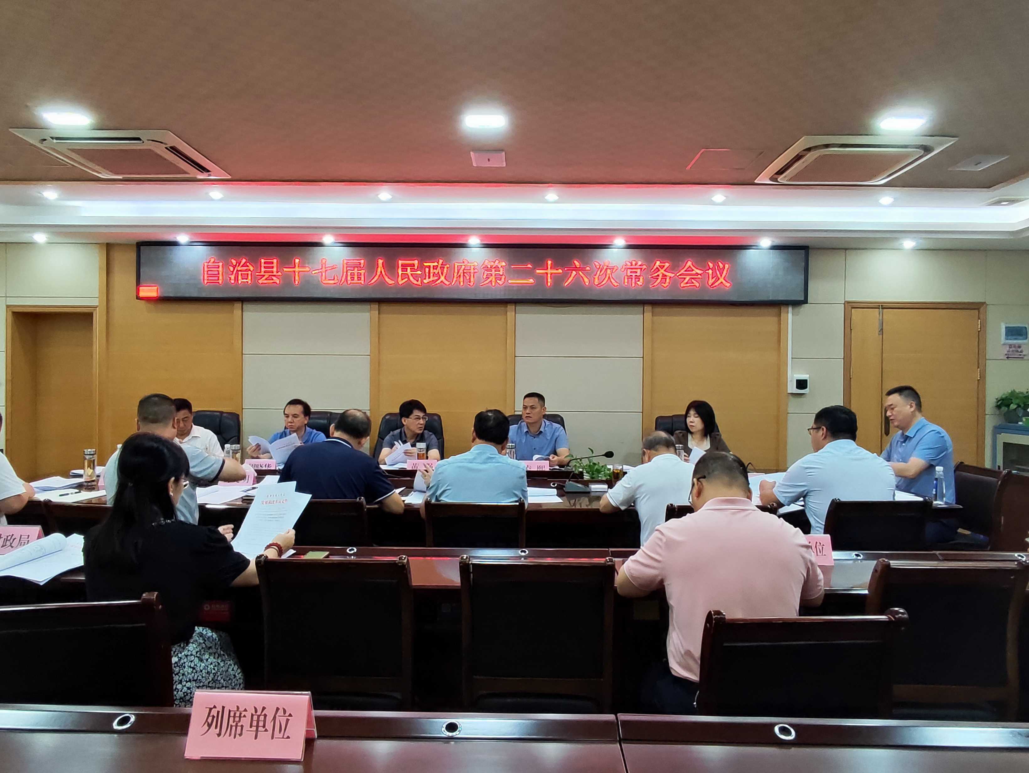 2023年7月19日,自治县人民政府县长黄强主持召开自治县十七届人民政府第26次常务会议。