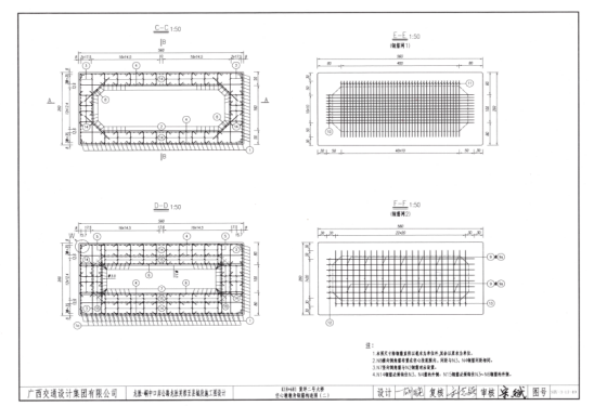 设计宽度:桥梁与路基同宽,主线桥梁设计为上、下行两座分离的独立桥梁,整体式路基桥梁总宽度25.5m,桥宽组成:0.5m(护栏)+11.75m(净宽)+0.5m(护栏)+2×0.25m(空隙)+0.5m(护栏)+11.75m(净宽)+0.5m(护栏)=26m; 分离式路基桥梁宽度12.75m,桥宽组:0.5m(护栏)+11.75m(净宽)+0.5m (护栏)=12.75m;涵顶横向宽度:与路基同宽。设计洪水频率:特大桥1/300,大、中、小桥及涵洞为1/100。