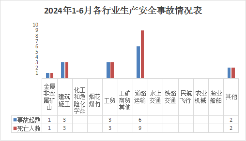 6月份接报生产安全事故起数3起、死亡5人、无受伤人数。