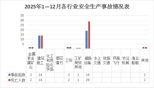 据统计,1—12月,全市通过生产安全事故统计信息直报系统报送各类生产安全事故40起、死亡50人、受伤20人。其中较大事故3起、死亡9人、受伤10人。