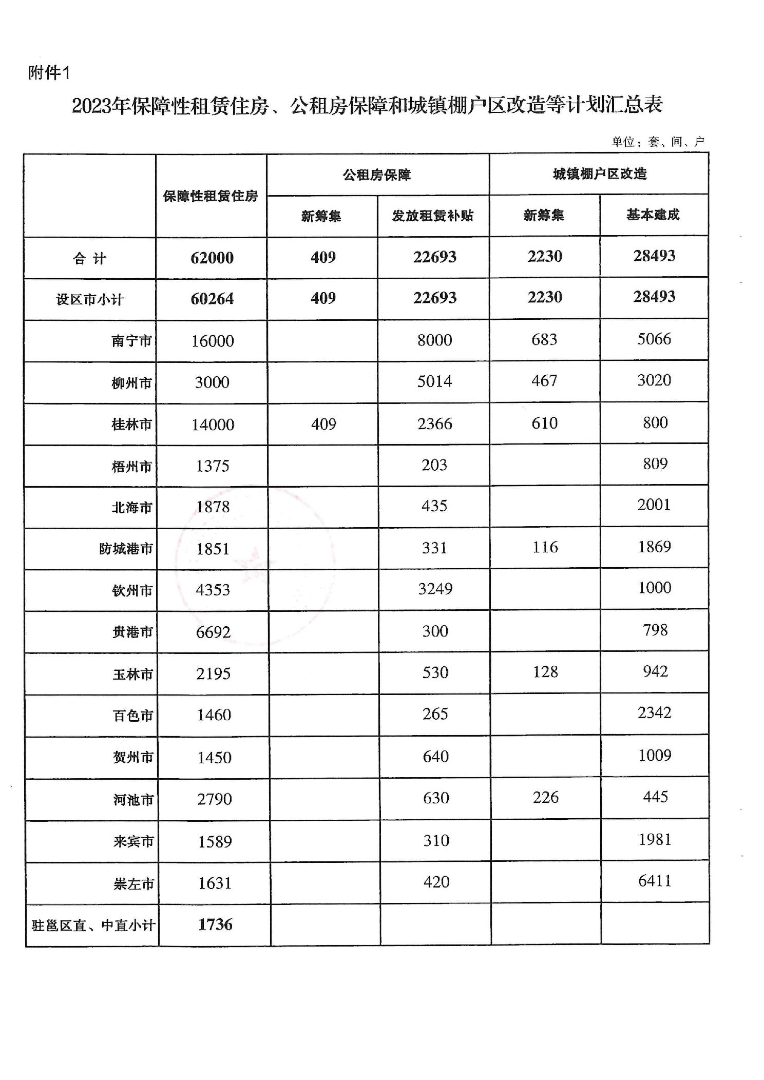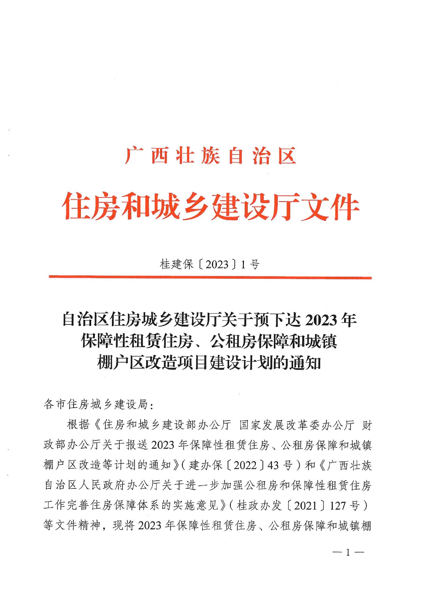 自治区住房城乡建设厅关于预下达2023年保障性租赁住房、公租房保障和城镇棚户区改造项目建设计划的通知