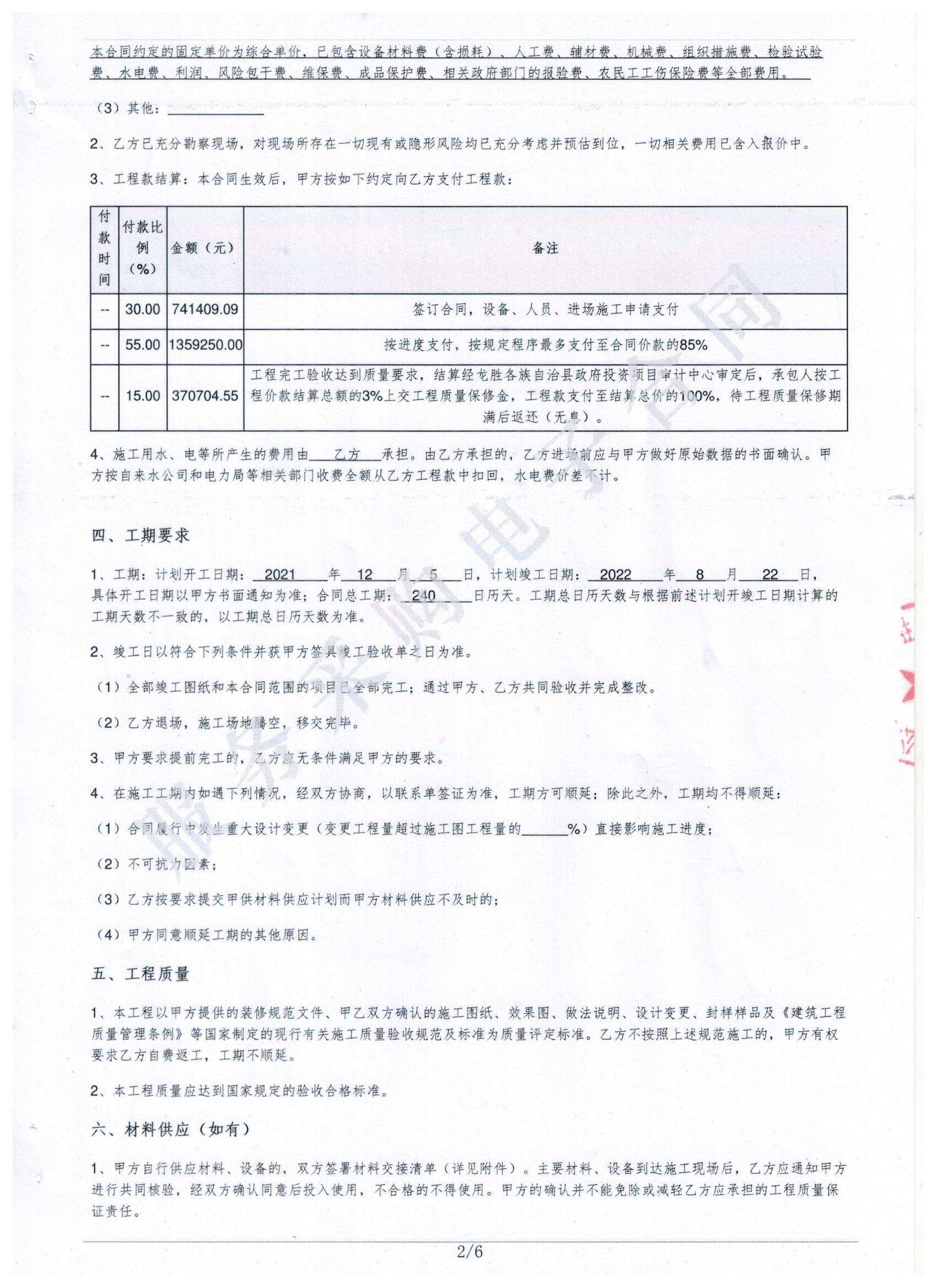 二、供应商名称: 龙胜各族自治县建筑安装工程公司