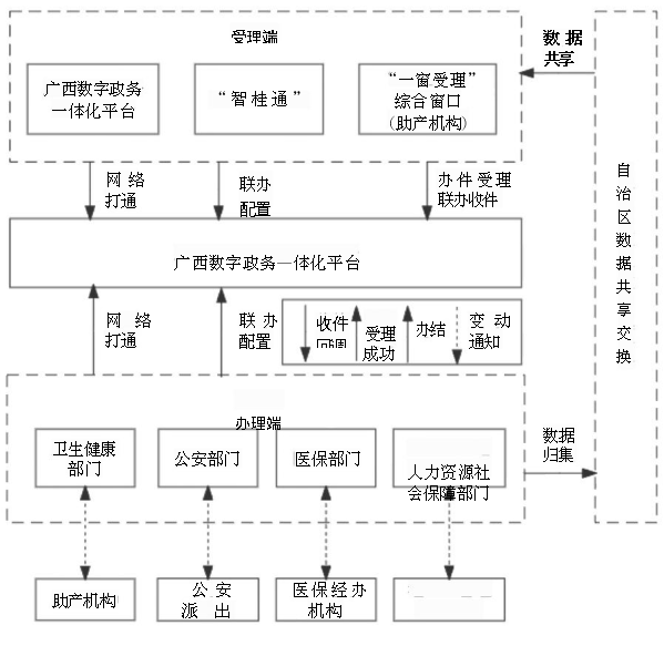 ①做好新生儿出生“一件事”本部门事项涉及业务系统、申请材料与广西数字政务一体化平台、“智桂通”等平台的对接,实现信息流转、数据共享;